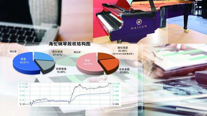 按照协议,陈海伦、金海芬及陈朝峰拟将合计间接持有的6026.06万股海伦钢琴股份(占公司股份总数的23.83%)转让给全拓卓戴。此次股份转让价款总计为5.48亿元,交易价格为9.09元/股,较最新市价折价约12%。